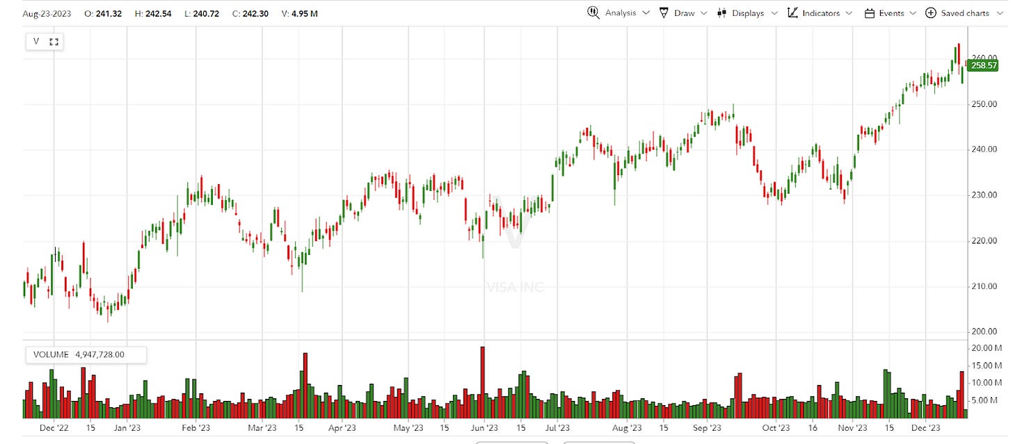 In November 2022, I released my inaugural post titled "Visa (V) - Exploring Our Options." Within that piece, I analyzed potential trajectories for the stock. Now, I'll provide a brief overview of the outcomes and delve into future perspectives once more.